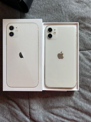 Teléfono móvil iPhone 11 con acabado blanco. Con la caja original - Capacidad de almacenamiento de 64GB. - Funciona todo a la perfección - Pantalla con rasguños invisibles cuando la pantalla está encendida