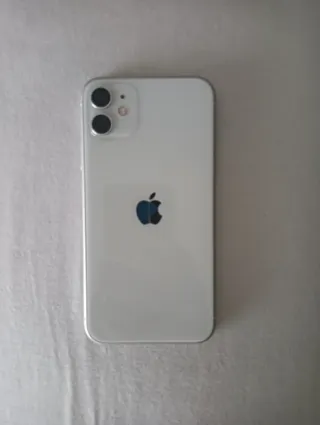 Teléfono móvil Apple iPhone 11 en color blanco. El volumen se escucha flojo y al hacer fotos con la cámara trasera no enfoca perfectamente. Por lo demás está perfecto.