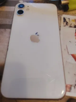 iPhone 11 de uso personal. Funciona perfectamente: cámaras, Face ID, botones, altavoces y táctil OK. ⚠️ Tiene el cristal trasero roto por una caída (ver fotos) y un arañazo en la pantalla, no afecta al uso. Nunca reparado, todo original. Ideal para quien lo use con funda, para reparar o como móvil secundario. Se vende por cambio de móvil.