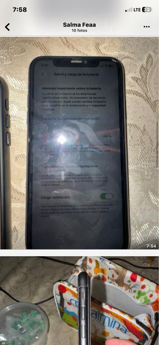 El movil funciona perfectamente, esta impecable, no tiene nada en la pantalla ni por detras como se aprecia en la foto, tiene 128 gb, la salud de bateria esta a un 73%. Precio negociable