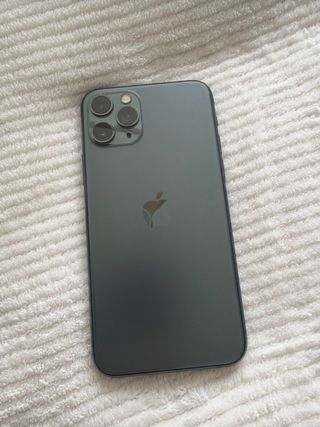 Teléfono móvil iPhone 11 Pro Max en color verde oscuro y con 256GB de almacenamiento. - Incluye cargador y cable. - Funda protectora transparente.