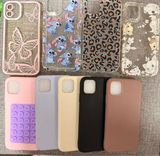 Lote de fundas para iPhone 11, todas nuevas y sin estrenar. Variedad de diseños para proteger tu móvil con estilo. Se venden juntas o por separado, precio indicado de forma individual. - Funda transparente con mariposas. - Funda transparente con estampado de Stitch. - Funda transparente con estampado de leopardo. - Funda transparente con personajes de Disney. - Funda rosa con soporte. - Funda lila. - Funda beige. - Funda negra. - Funda marron.