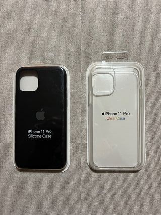 Se venden dos fundas para iPhone 11 Pro: una de silicona negra y otra transparente. - Funda de silicona color negro. - Funda transparente. - Diseñadas para iPhone 11 Pro.