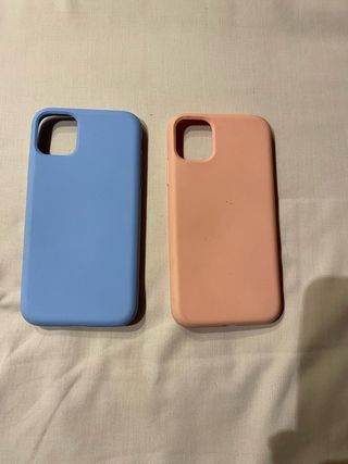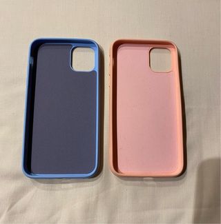 Dos fundas protectoras para iPhone 11. - Funda de color azul. - Funda de color rosa.