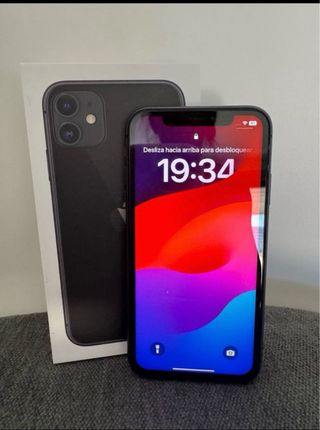 Iphone 11 Negro con capacidad para 128 GB , tiene uso pero como se puede apreciar en las fotos esta en buen estado. Movil muy fiable y que nunca me ha dado errores. No presenta rasguños en ninguna parte , salvo que se pueda apreciar en las fotos que esta un poco sucio debido al uso. La salud de la bateria es de un 74% y nunca ha sido reemplazada. Caja incluida.