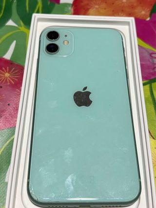 Teléfono móvil iPhone 11 en color verde turquesa. Está muy nuevo y funciona super bien, se puede ver y probar sin compromiso. Lo vendo por no utilizar ya. Bateria al 68%. Escribir sin compromiso.