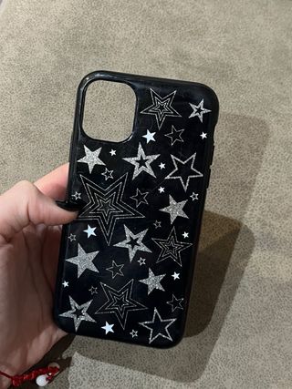 Funda para iPhone 11 con un diseño de estrellas plateadas sobre fondo negro. - Diseño de estrellas brillantes. - Color negro.
