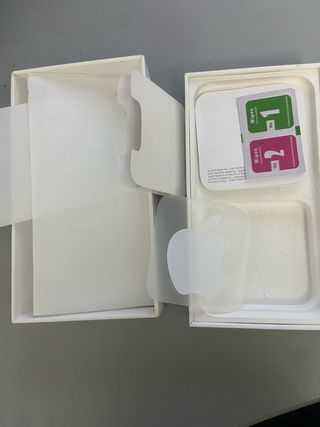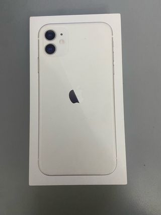 Caja original para iPhone 11 en color blanco. Viene con protectores de pantalla, productos de limpieza y una pegatina.