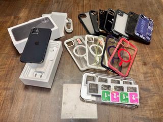 Se vende iPhone 11 en color negro, junto con varios accesorios. - Fundas de protección transparentes y de colores. - Cargador y cable. - Auriculares. - Kit de limpieza para pantalla.