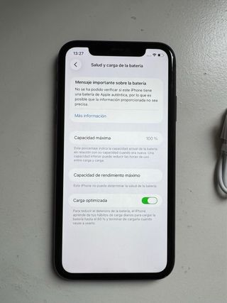 Batería de repuesto original para iPhone 11. Usada original. *Salud batería 78% ✅ *Referencia: 616-00641✅ *Voltaje 3110 mAH ✅ Tal cual se ve en las fotos. Probada no hay devolución. *TLF 697456872* whatsapp o tlf También instalación y reparación Consulte precios sin compromiso.