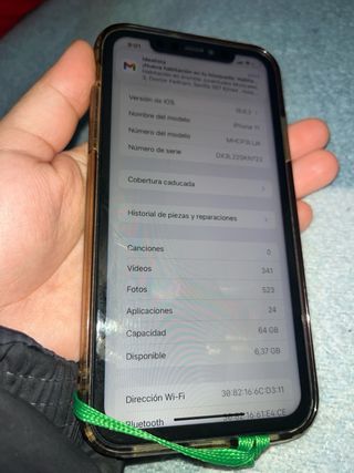 Teléfono móvil iPhone 11 en color negro. Ideal para vender por piezas. Para reparar no creo que merezca la pena, tiene las 2 camaras, el puerto de carga y la pantalla por delante y detras, aparte de la salud de la bateria baja. Eso si, el telefono enciende, aunque se debe cargar con cargador inalámbrico, y el tactil no va bien. Se entrega en mano en Sevilla
