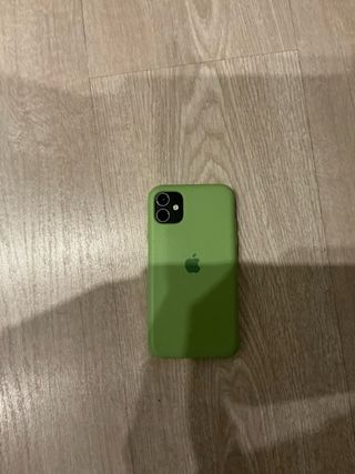 Teléfono móvil iPhone 11 con acabado en verde y 128GB de almacenamiento. Incluye funda de goma.