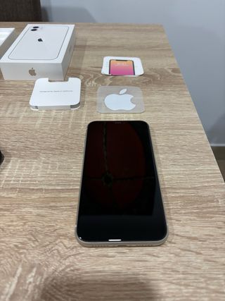 Se vende iPhone 11 en color blanco, junto con varios accesorios. 128gb Precio negociable Solo tiene un pequeño arañazo en el botón de encender pero funciona perfectamente (ver ultima foto)