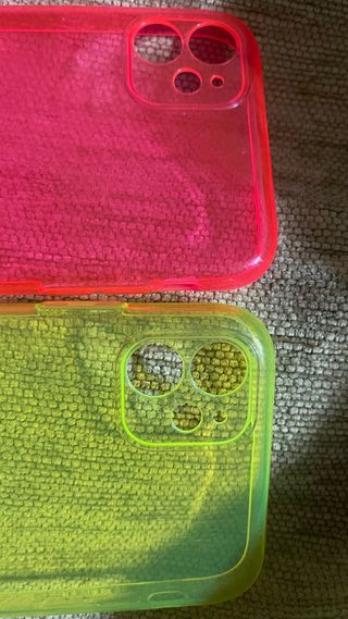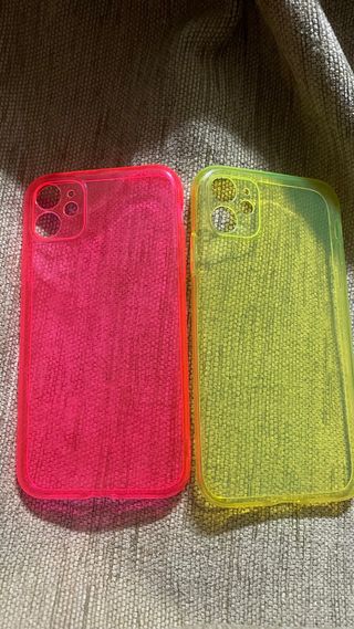 Dos fundas fluorescentes para iPhone 11, una en color rosa y otra en amarillo. - Diseño llamativo y moderno. - Material translúcido.