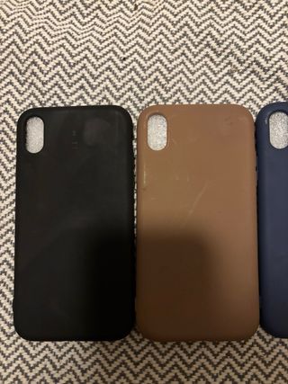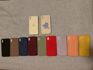Pack de fundas para Iphone XR color negro, marrón, azul oscuro, tinto, verde, rojo, violeta, naranje y amarillo, además de dos fundas con dibujos. - Pack completo (11 fundas): 15€ - Pack fundas colores lisos (9 fundas): 10€ - Pack fundas con dibujo (dos fundas): 5€ - 1 Funda con dibujo suelta: 3€
