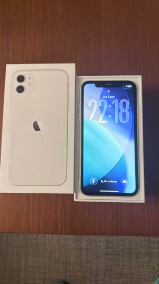 Teléfono móvil iPhone 11 en color blanco. - Diseño elegante y moderno. - Cámara dual para fotos de alta calidad. - Pantalla nítida y vibrante.