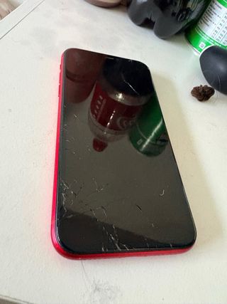 Teléfono móvil iPhone 11 en color rojo. La pantalla presenta algunas grietas. - Pantalla con grietas visibles. - Marco de color rojo. - Movil funciona perfectamente a pesar de su estado. - Acepto cambios por algo de mi interes