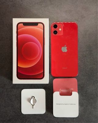 Teléfono móvil iPhone 12 mini en color rojo. Incluye caja original y accesorios. - Modelo: iPhone 12 mini - Color: Rojo - Incluye: Caja original, herramienta para SIM, folleto (PRODUCT)RED.