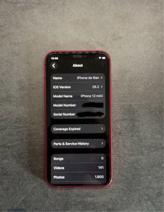 Teléfono móvil iPhone 12 con 128 GB de capacidad. - Modelo: iPhone 12 - Capacidad: 128 GB - iOS: 26.3.1 (a) - Almacenamiento disponible: 108,84 GB