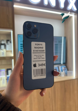🚨 ¡SOLO PARA LOS MÁS RÁPIDOS! 😱 iPhone 12 Pro Max 128GB Pacific Blue 🔹 Color: Pacific Blue 🔋 Batería: 100% 🎁 Incluye funda, cable de carga y protector de pantalla. 🛡️ Garantía: 12 meses 📍 Calle de la Princesa 71, Madrid 🏬 FONYX 📞 614 510 309