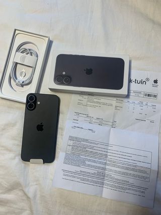 iPhone 16 plus en color negro con 128GB de almacenamiento. - Modelo: iPhone 16 plus - Capacidad: 128GB - Color: Negro Completamente nuevo. Comprado el 12/12/25 para un regalo y no haber podido cambiarlo por quitar el celofan de la caja. Adjunto factura de compra con garantia Precio no negociable