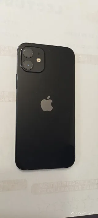 Teléfono móvil iPhone 12 en color negro y con 128GB de almacenamiento. -Batería cambiada hace 1 mes (esta al 100%). -Pantalla y cristal trasero sin daños. -Todo funciona -Se vende por cambio a otro modelo -Mando fotos y videos sin compromiso