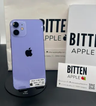 Se vende iPhone 12 Mini 128GB PURPLE IMPOLUTO ! No tiene ningun tipo de roce o marca , muy poco uso. Practicamente LO ESTRENAS TU!!! **Batería ORIGINAL DE APPLE con salud al 93%** ** Bitten Apple Store Zaragoza ** Nos encontraras en nuestra tienda fisica en pleno centro de Zaragoza ; Calle Cinco de Marzo N°11 * Adjuntamos Factura a tu nombre & GARANTIA PREMIUM * Acepto cambio por otro teléfono ajustando diferencias ( SOLO ACEPTO CAMBIOS EN MANO / ZARAGOZA