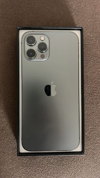 Teléfono móvil iPhone 12 Pro Max 256Gb en color gris espacial. Nunca se ha reparado Siempre Con su protector de pantalla No tiene ni un rasguño. Viene con su caja, No incluye cable. Viene con dos fundas a estrenar Con 82% de bateria, entrega a mano en madrid. No es negociable.