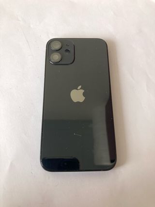 Teléfono móvil iPhone 12 mini en color negro y con 128GB de almacenamiento. - Pantalla de 5.4 pulgadas. - Chip A14 Bionic. - Sistema de cámara dual. Teléfono en perfecto estado de funcionamiento. Pantalla delantera intacta. Cristal trastero roto, pero se puede cambiar. No afecta a las cámaras. Incluye funda y cargador.