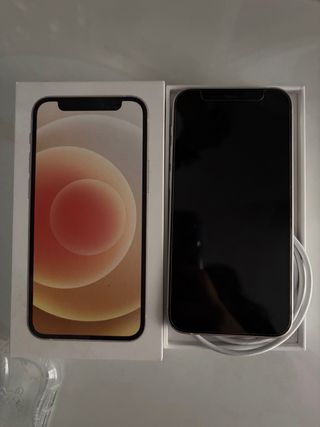 Teléfono móvil iPhone 12 Mini en color blanco. Incluye cable de carga. Regalo varias fundas. - Diseño elegante y compacto. - Pantalla nítida y vibrante. - Cámara dual para fotos de alta calidad.