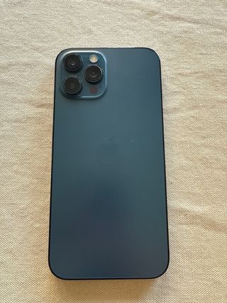 iPhone 12 Pro Max en color Azul Pacífico con 128GB de almacenamiento. fisicamnete en casi perfecto estado