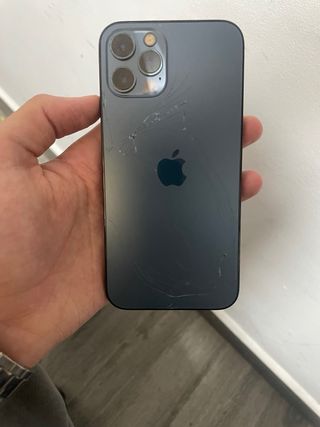 Vendo IPhone 12 pro de 128gb. Funciona a la perfección, lo vendo porque me he comprado el último. Tiene la parte del cristal trasero quebrada desde hace varios años y no ha ido a más al usarlo siempre con funda. Funciona a la perfeccion todas las cámaras, face id y todo lo demás. Salud de la bateria al 77%.