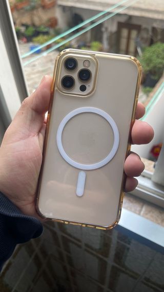 iPhone 12 Pro en color dorado, con un diseño elegante y moderno. 128 GB Incluye una funda transparente con anillo MagSafe. El equipo esta como nuevo se le cambio la Bateria (100%) Pantalla cambiada El primero con una buena oferta se lo lleva