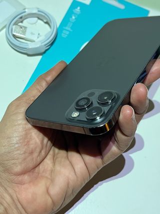 Teléfono móvil en excelente estado. - Diseño elegante en gris espacial. - Capacidad 256GB. - Pantalla 6,7” Súper Retina XDR1. - Estructura acero inoxidable. - Resistencia al agua hasta 6m durante max. 30min. - Chip A15 Bionic - Cámara TrueDepth de 12mpx (Pro principal, ultra angular y teleobjetivo). - Conexión Lightning. - Conserva el embalaje original. - Usado, dueño anterior muy precavido y responsable.