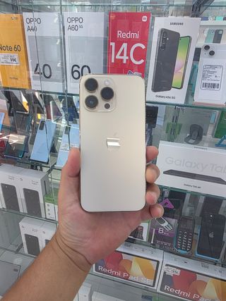 📱 Pantalla: OLED 6,7″ Super Retina XDR, ProMotion 120 Hz, brillo hasta 2000 nits, Always-On y Dynamic Island. • 🛠 Materiales: marco de titanio, vidrio mate trasero, protección IP68. • ⚙️ Procesador: chip A17 Pro (3 nm), 8 GB RAM. • 💾 Almacenamiento: 256 GB • 📷 Cámaras: • Principal: 48 MP • Ultra gran angular: 12 MP • Telefoto (exclusivo del Pro Max): 12 MP con zoom óptico 5× • Sensor LiDAR • 🔋 Batería: ~4,400 mAh, hasta 29 h de video, carga rápida (50% en 35 min aprox.), MagSafe y carga inalámbrica. • 🔌 Conectividad: 5G, Wi-Fi 6E, Bluetooth 5.3, USB-C, NFC, Ultra Wideband 2. • 🎨 Color: titanio blanco.