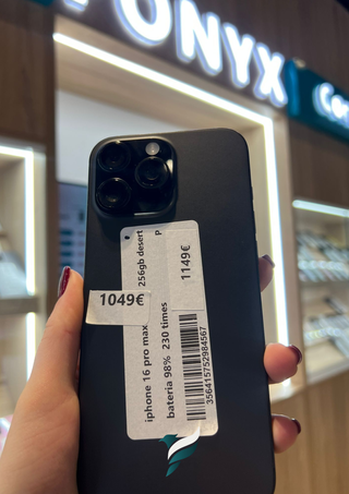 IPHONE 16 PRO MAX 256GB COLOR DESIERTO EN PERFECTO ESTADO. ACEPTAMOS ARTÍCULOS COMO PARTE DE PAGO O PARA VENTA DIRECTA 📲 FACTURA ✅ GARANTÍA 12 MESES ⭐️ TODAS LA PIEZAS ORIGINALES 100%. NUNCA REPARADO ❎ BATERIA🔋95% DE CAPACIDAD, ORIGINAL. INCLUYE: CABLE 🔌 / CRISTAL TEMPLADO / CAJA ORIGINAL ENTREGA BAJO CITA PREVIA EN MADRID 📔 TRABAJAMOS DE (LUNES A DOMINGO) 📆