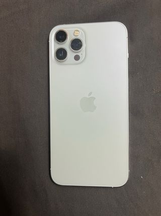 iPhone 12 Pro Max en color blanco. Una de las cámaras traseras está arañada, no afecta a las fotos. Pantalla delantera con un pequeño arañazo casi invisible. - Pantalla Super Retina XDR. - Chip A14 Bionic. - Sistema de cámaras Pro avanzado. - Compatible con 5G.