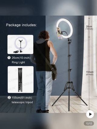 Aro de luz LED, Micrófono Portable & Soporte Móvil . - Aro de luz circular, Trípode estable y plegable. Múltiples tonos de luz. - Micrófono Portable - Soporte Móvil. Plegable Kit de anillo de luz de 10 pulgadas con trípode plegable extensible (el kit de anillo de luz mide 71" de alto en total), luz LED circular con soporte para teléfono. Wireless Lavalier Microphone Lamicall Soporte Móvil con Cuello de Cisne - Soporte Teléfono e Smartphones para iPhone 17 Pro MAX Air, 16 15 14 13 12 11 Pro MAX Mini Plus XR X 8 7 6, Samsung, Huawei, Otras Smartphones.