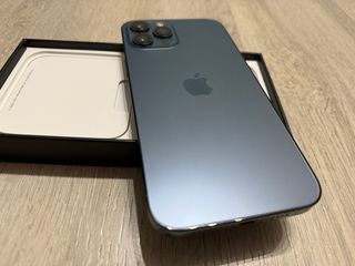 Teléfono móvil iPhone 12 Pro Max en excelente estado. - Capacidad de 128 GB. - Color azul/gris. -salid de la bateria 79%