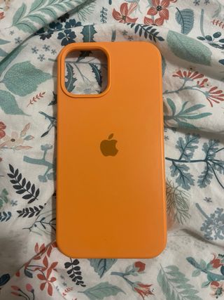 Carcasa naranja de silicona IPHONE 12 PRO MAX. Cuidada perfectamente y poco uso. En perfecto estado salvo la parte del interior de abajo,que está levemente desgastada. No se nota desde fuera.