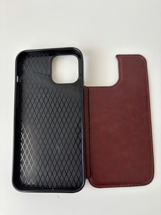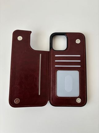 Funda tipo cartera en color marrón para iPhone 12 Pro Max. Protege tu teléfono con estilo. - Diseño de piel sintética. - Compartimentos para tarjetas. - Cierre magnético. Es el articulo de la foto de la pagina Icon Varsovia Nunca se ha usado la funda.