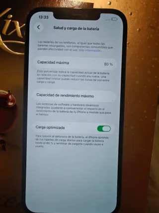 Teléfono móvil iPhone 12 Pro Max. - Pantalla de 6.7 pulgadas. - Cámara triple de 12 MP. - Chip A14 Bionic. Actualizado a iOS 26.2 La pantalla hace alguna cosa rara se cambio en su dia no es original El cristal de atras está fracturado si bien no afecta al funcionamiento del movil Capacidad batería 81% Regalo funda con cordón para carga inalámbrica