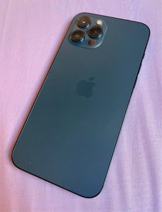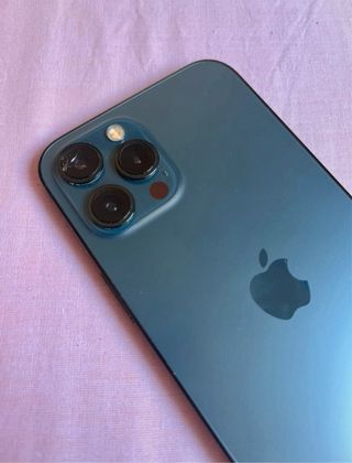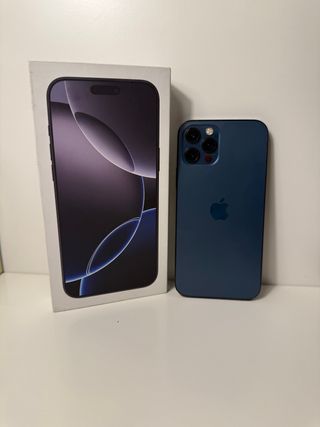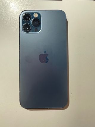 iPhone 12 Pro en color Azul Pacífico con una capacidad de almacenamiento de 128GB. - Salud de la batería 74% - Funciona perfectamente. - Incluye caja original y cable USB. - Muy cuidado, nunca reparado. - Siempre usado con funda y protector.