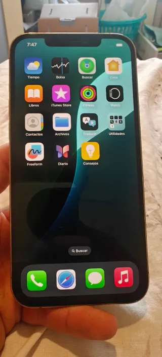 Teléfono móvil iPhone 12 Pro. - Pantalla de 6.1 pulgadas. - Cámara Pro. - Chip A14 Bionic. Iphone en buen estado, funciona perfectamente, a pesar de tener alguna picada en los bordes del telefono, como se observa en las fotos la pantalla y la parte trasera están en perfecto estado Lleva protector en las cámaras traseras. Capacidad de la bateria 74% Incluye 4 protectores de pantalla nuevos para sustituir el que lleva puesto y el cable para cargarlo, NO INCLUYE EL CABEZAL QUE VA A LA LUZ También incluye una funda protectora