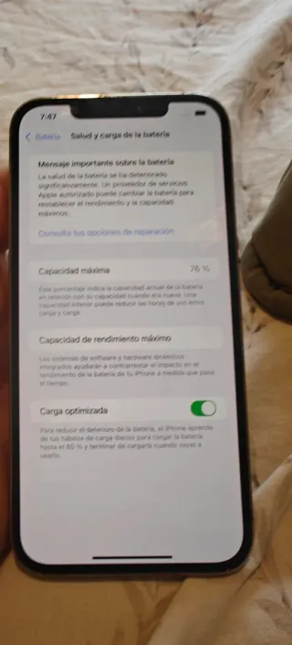 iPhone 12 Pro en color azul con 128GB de almacenamiento. - Capacidad máxima de la batería: 100%. - El porcentaje indica la capacidad de la batería en relación con su capacidad cuando era nueva. Una capacidad inferior puede reducir las horas de uso entre carga y carga. el face id no funciona
