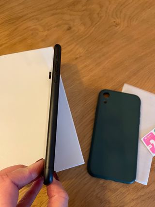 Teléfono móvil iPhone XR Incluye funda protectora. - Color negro. - Pantalla de 6.1 pulgadas. - Cámara trasera de 12 MP. - Funda con diseño dorado. Va un poco regular, el resto bien, la batería está cambiada pero no es original de apple. Es reacondicionado