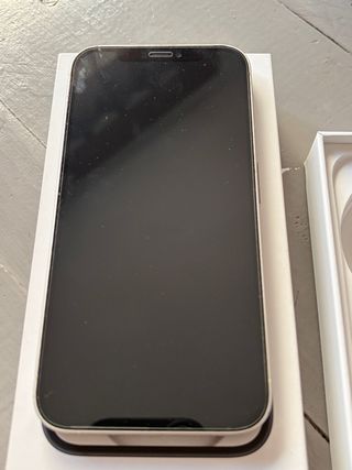iPhone 12 en color blanco con 128GB de almacenamiento. Presenta algunos pequeños roces del uso en bordes, pero está muy bien cuidado. La pantalla está perfecta, tiene un protector de vidrio templado. Se entrega con cable, no original, pero compatible. Y dentro de una caja de iPhone, pero no la de este teléfono. - Capacidad: 128 GB - Color: Blanco
