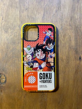 Funda para iPhone 12 Pro con diseño de Dragon Ball Z. - Personajes: Goku, Vegeta, Piccolo, Krilin y Gohan. - Estampado Goku + Fighters. - Borde amarillo. - Logo de CASETiFY.