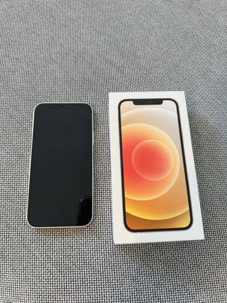 Teléfono móvil iPhone 12 con acabado en negro y 128GB de almacenamiento. - Estéticamente está como el primer día, sin un rasguño. Siempre protegido con funda y cristal templado. - 85% salud de batería - Incluye caja y cable original USB-C. - Fundas protectora transparente con MagSafe. - Regalo juego de fundas y cristal templado anti-espías (ver dos últimas fotos). - No ha sido nunca reparado no sustituida ninguna pieza. - SÓLO ENTREGA EN MANO.