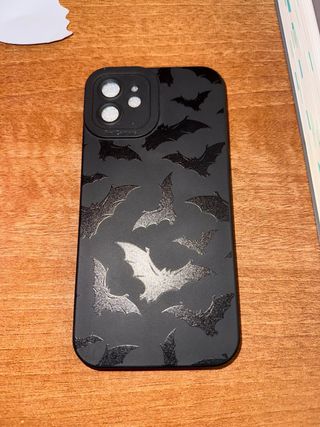 Funda protectora para iPhone 12 con un diseño de murciélagos. - Color negro. - Estampado de murciélagos. - Diseño inspirado en Batman.